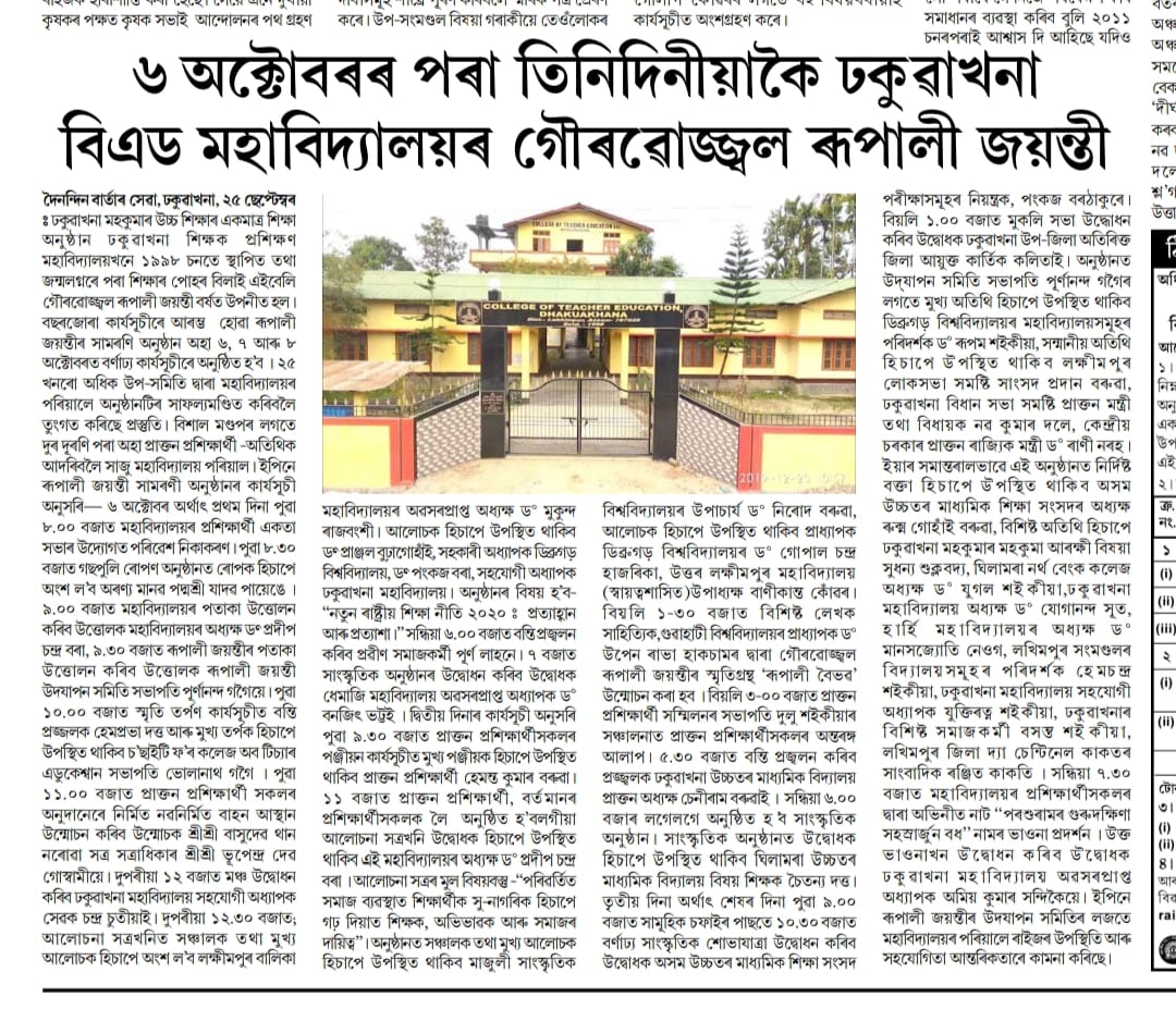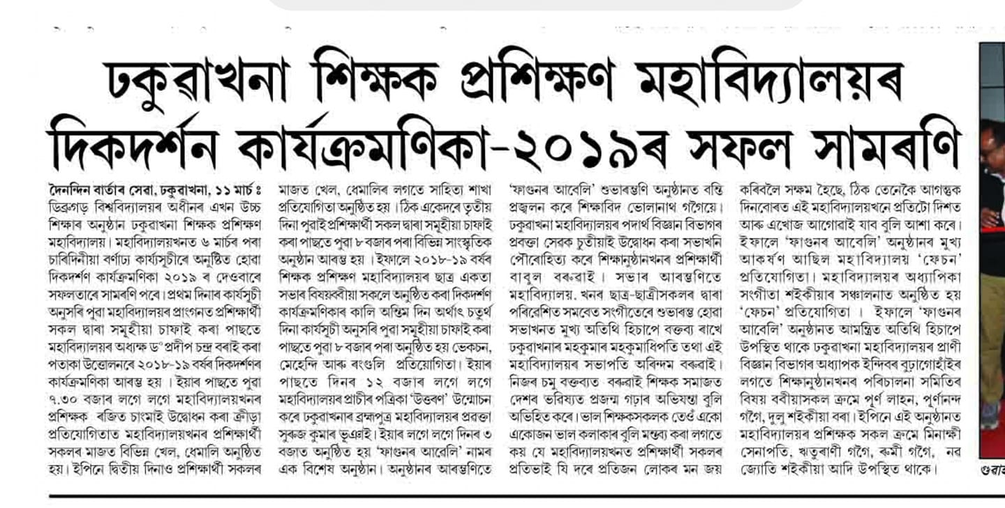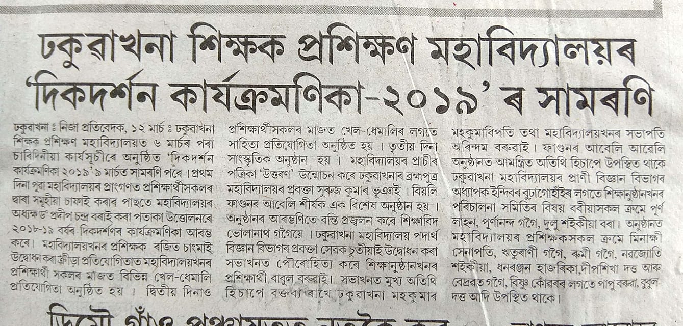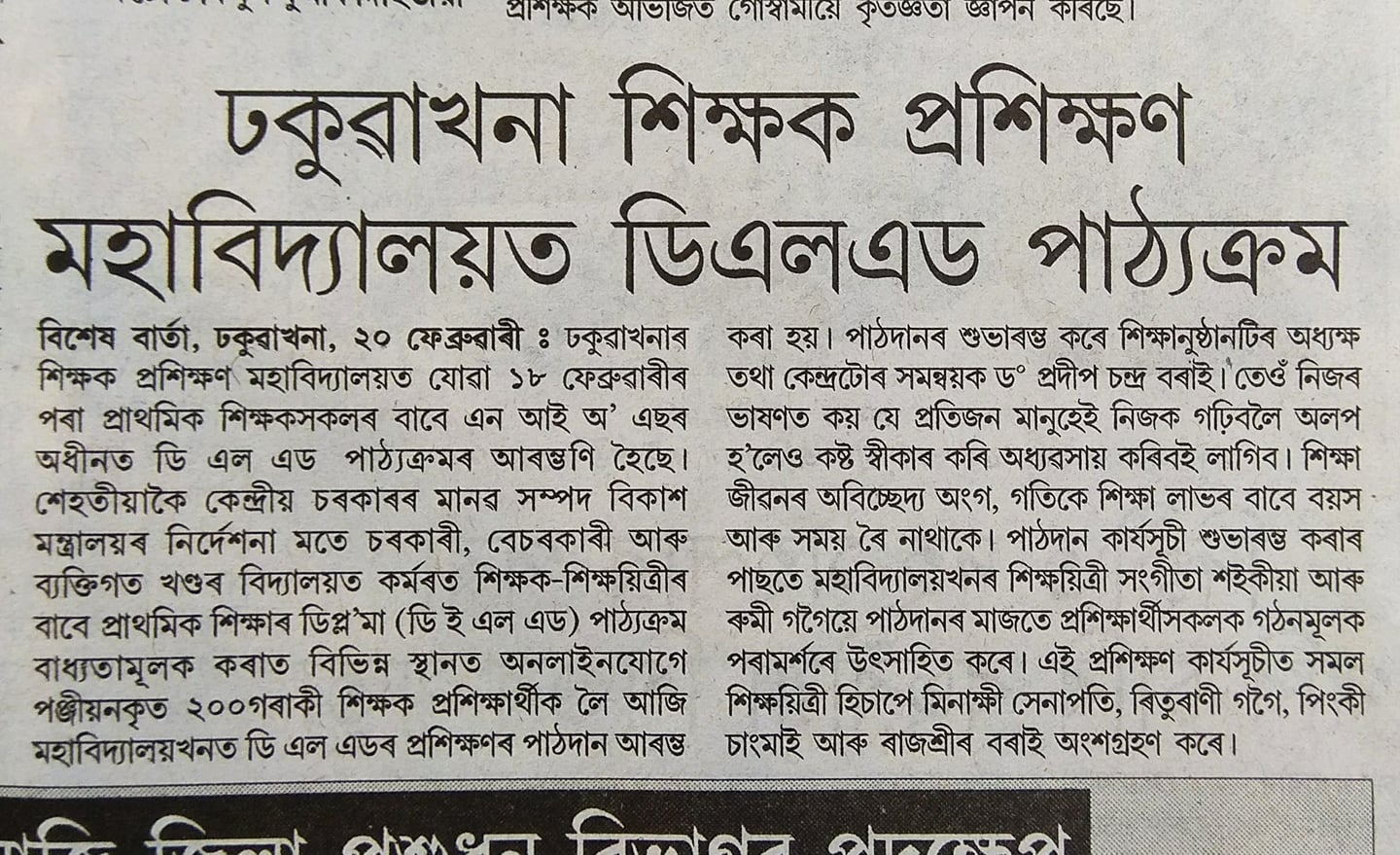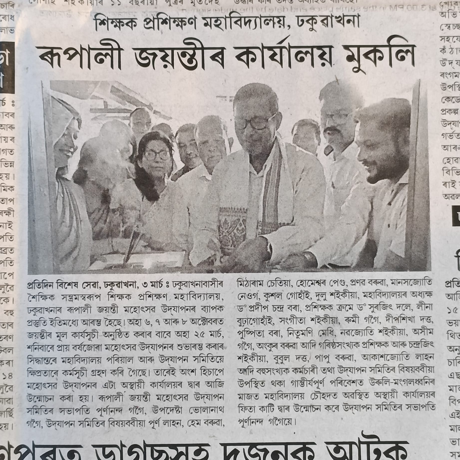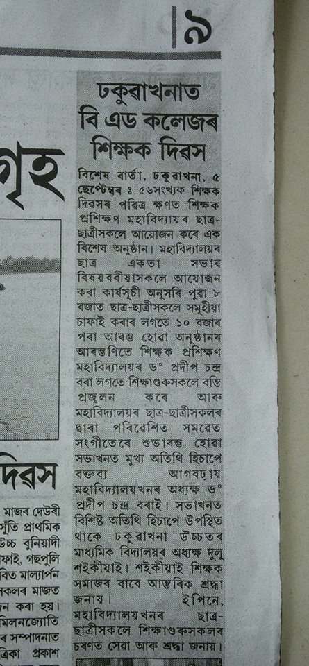 College of Teacher Education, Dhakuakhana came into being pursuant to the untiring endeavor of the populace of the sub-division Dhakuakhana and its setting up is definitely a fulfillment of long standing dream of this locality. This college now caters to the educational need of the people, not only of this backward and flood-affected area but also the entire Assam as well as outside Assam also.