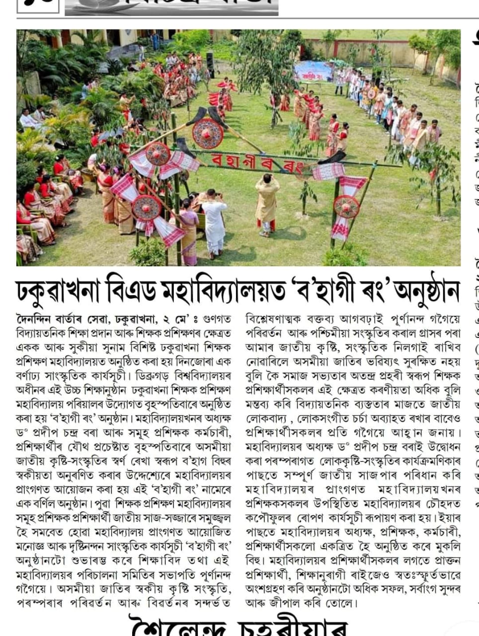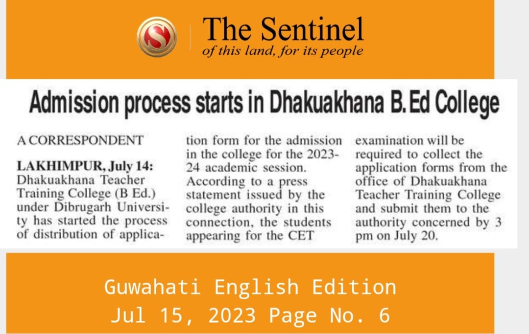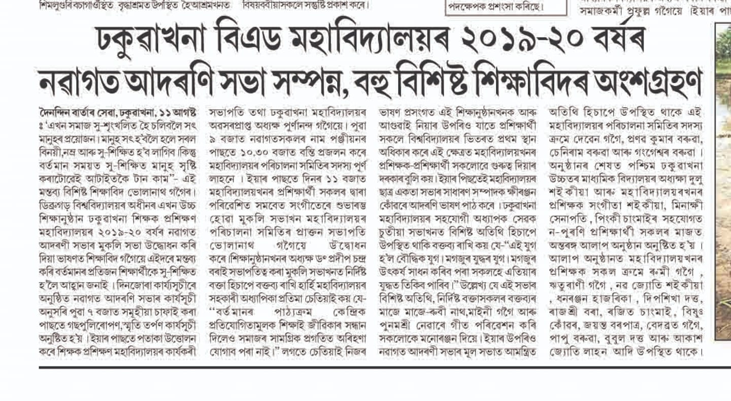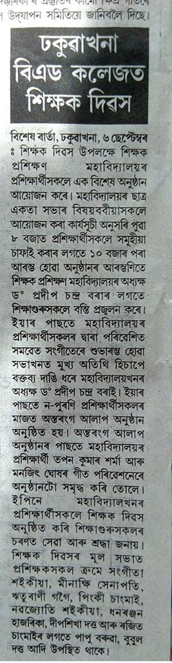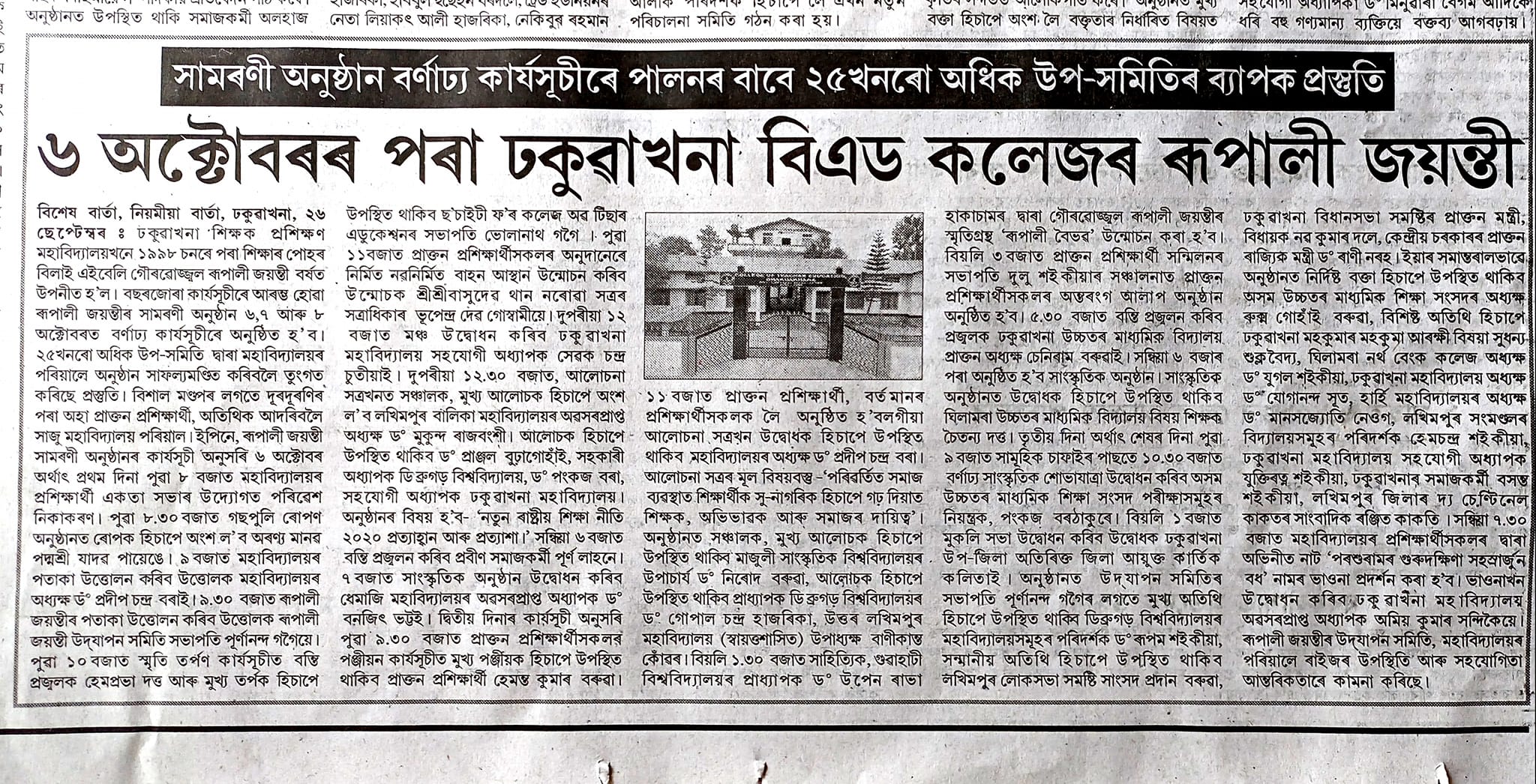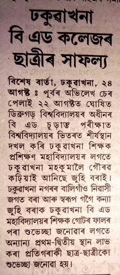 College of Teacher Education, Dhakuakhana came into being pursuant to the untiring endeavor of the populace of the sub-division Dhakuakhana and its setting up is definitely a fulfillment of long standing dream of this locality. This college now caters to the educational need of the people, not only of this backward and flood-affected area but also the entire Assam as well as outside Assam also.