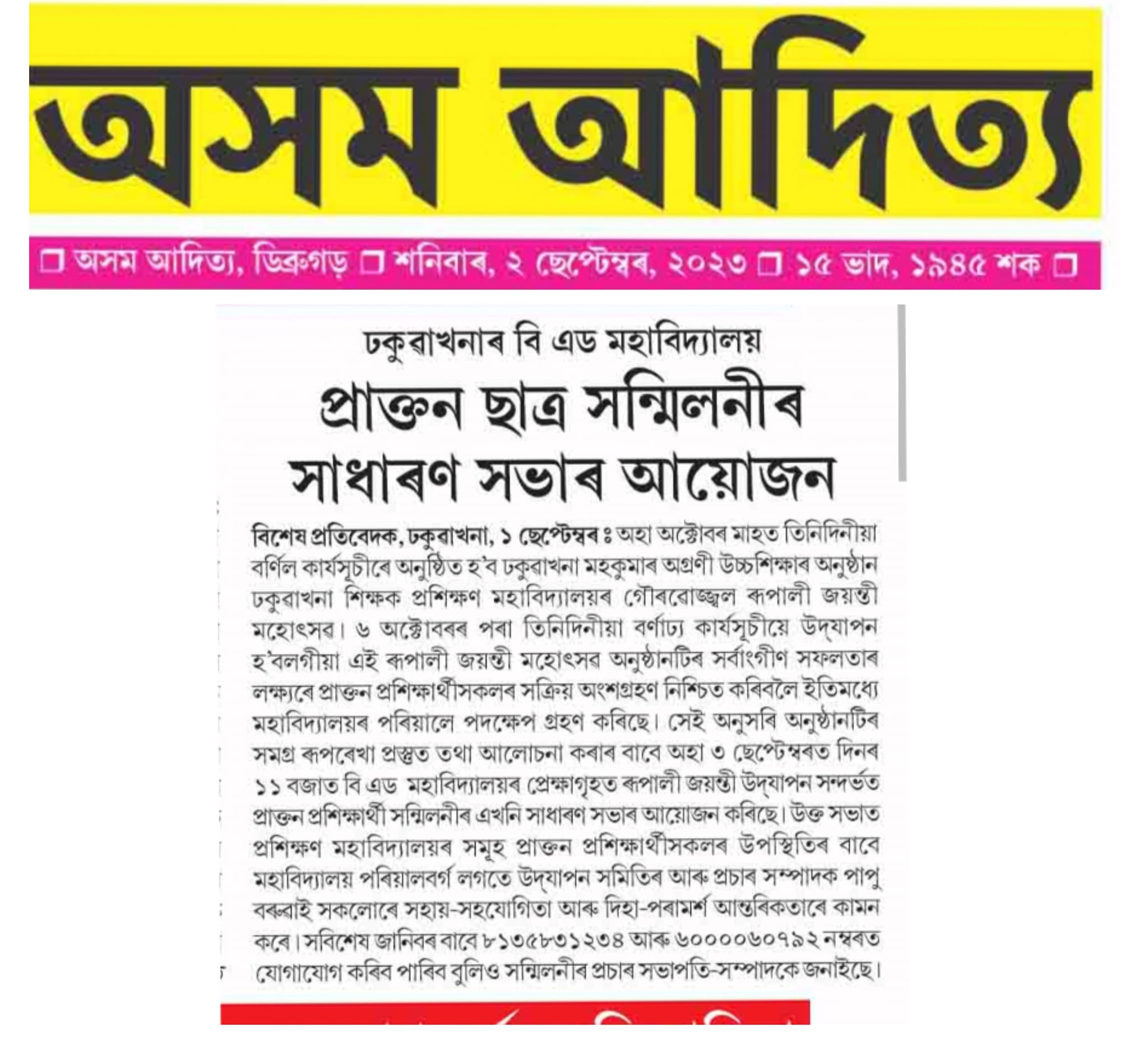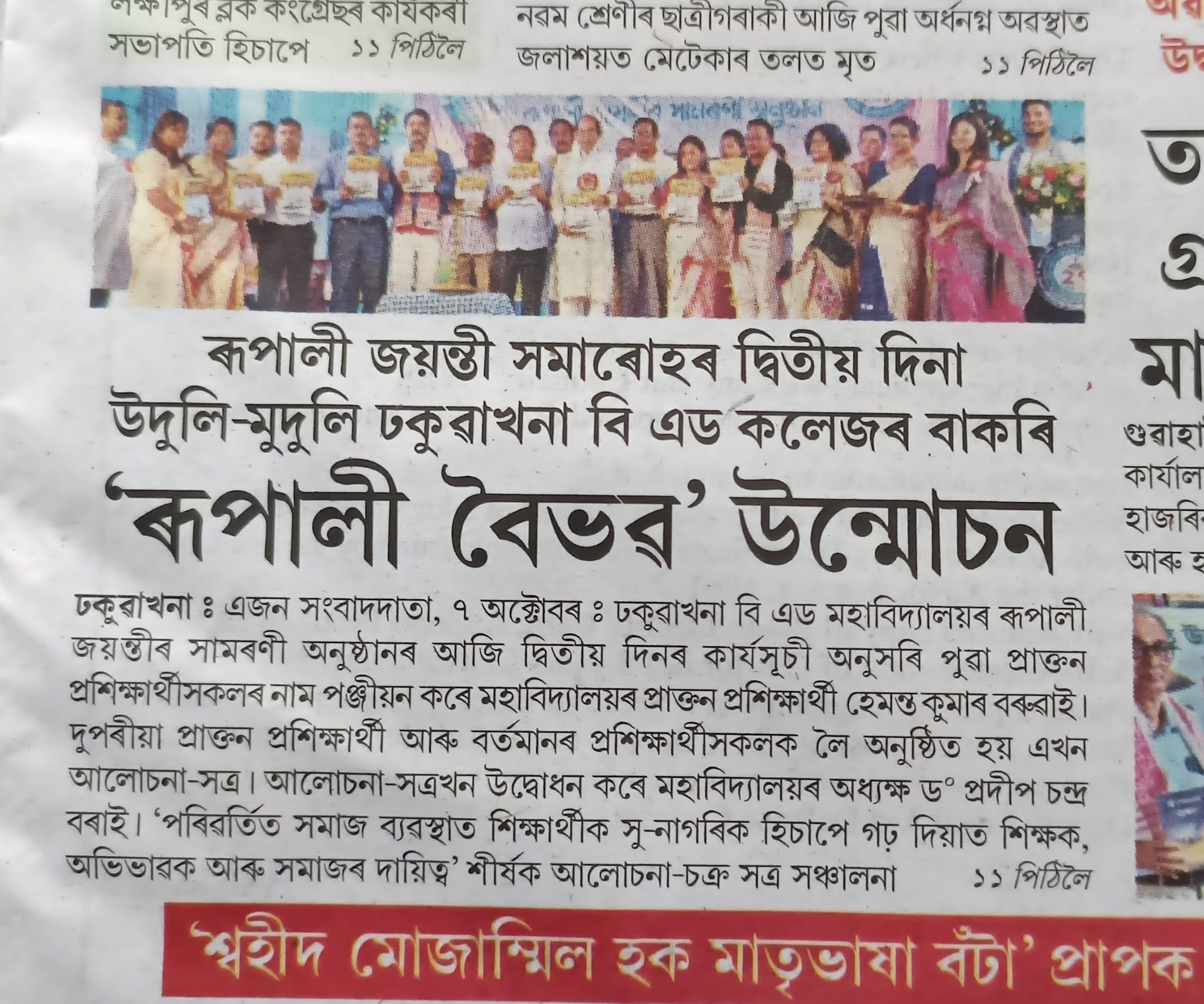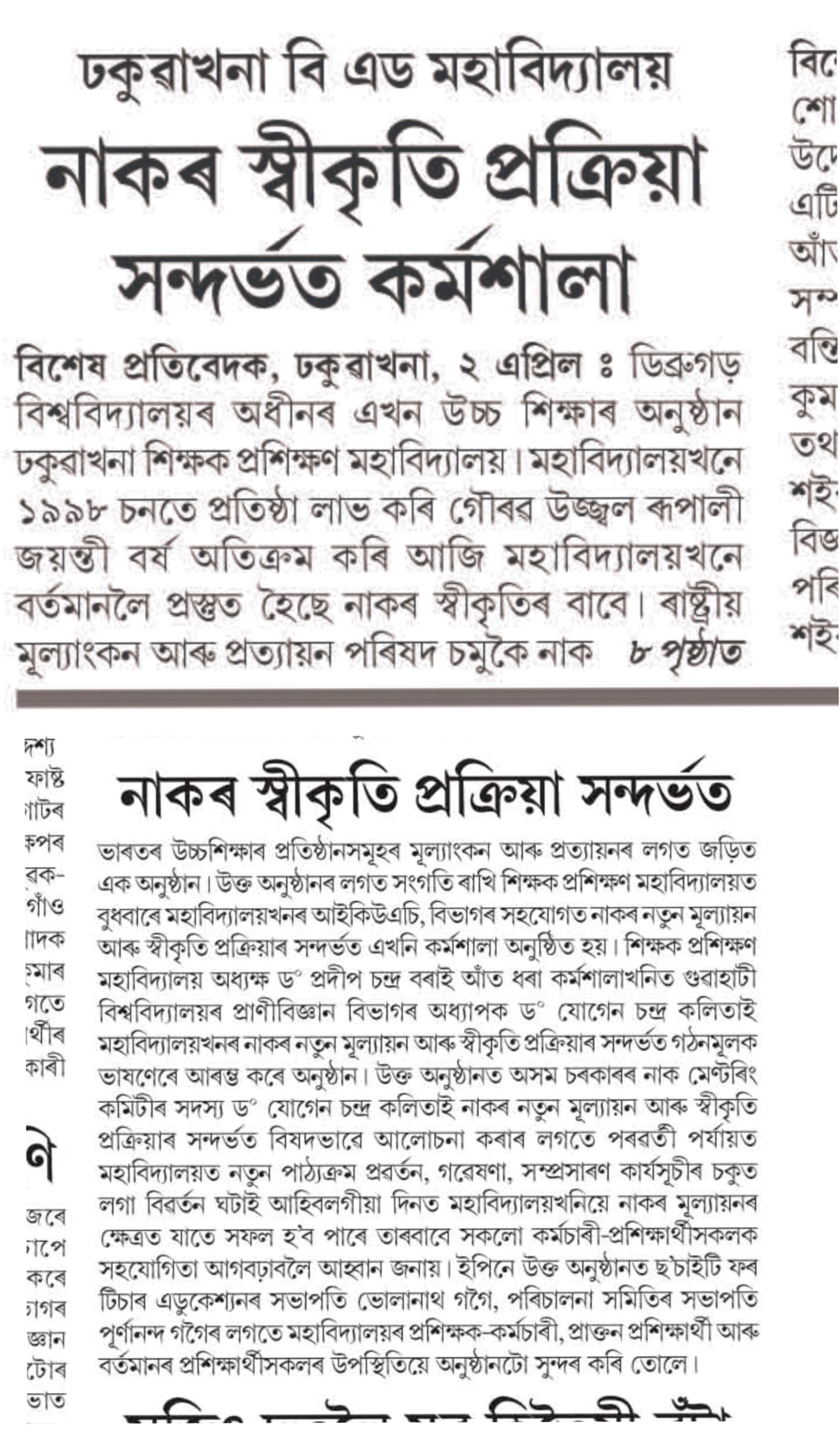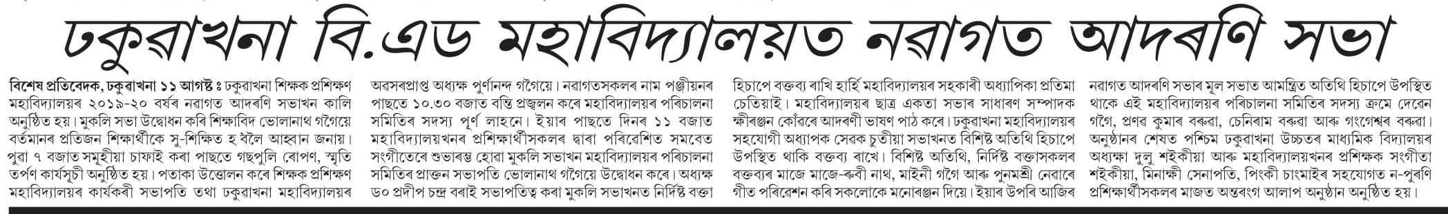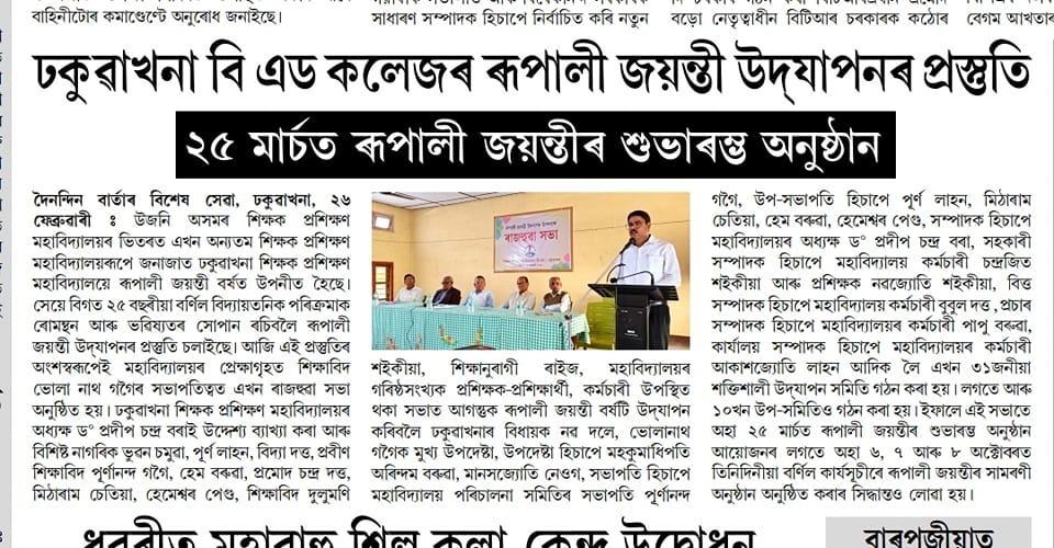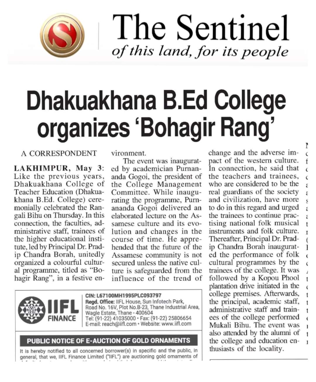College of Teacher Education, Dhakuakhana came into being pursuant to the untiring endeavor of the populace of the sub-division Dhakuakhana and its setting up is definitely a fulfillment of long standing dream of this locality. This college now caters to the educational need of the people, not only of this backward and flood-affected area but also the entire Assam as well as outside Assam also.