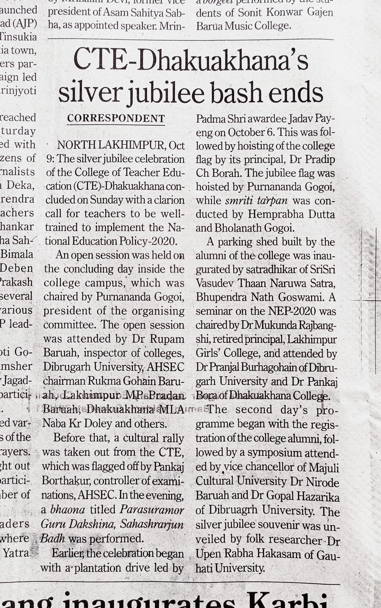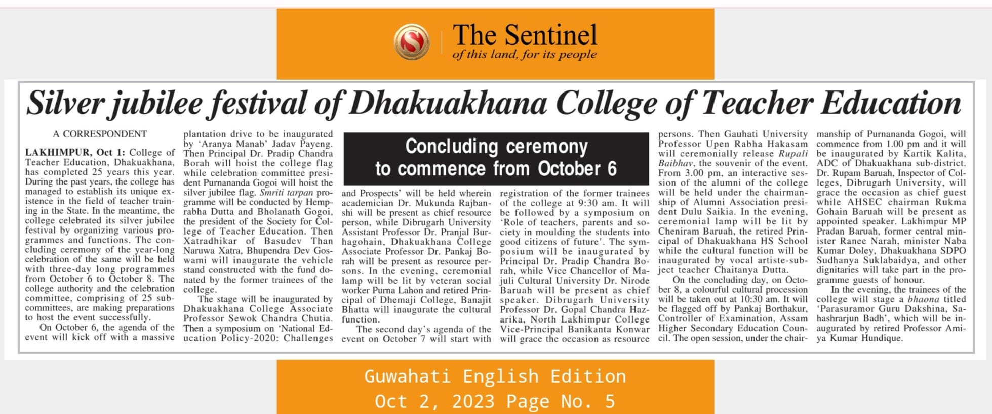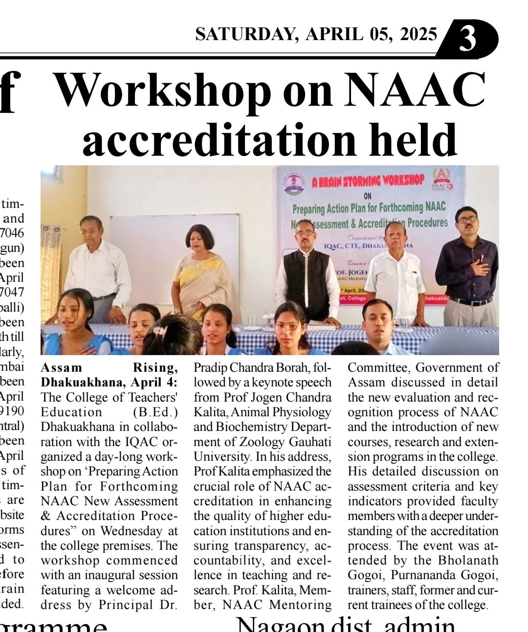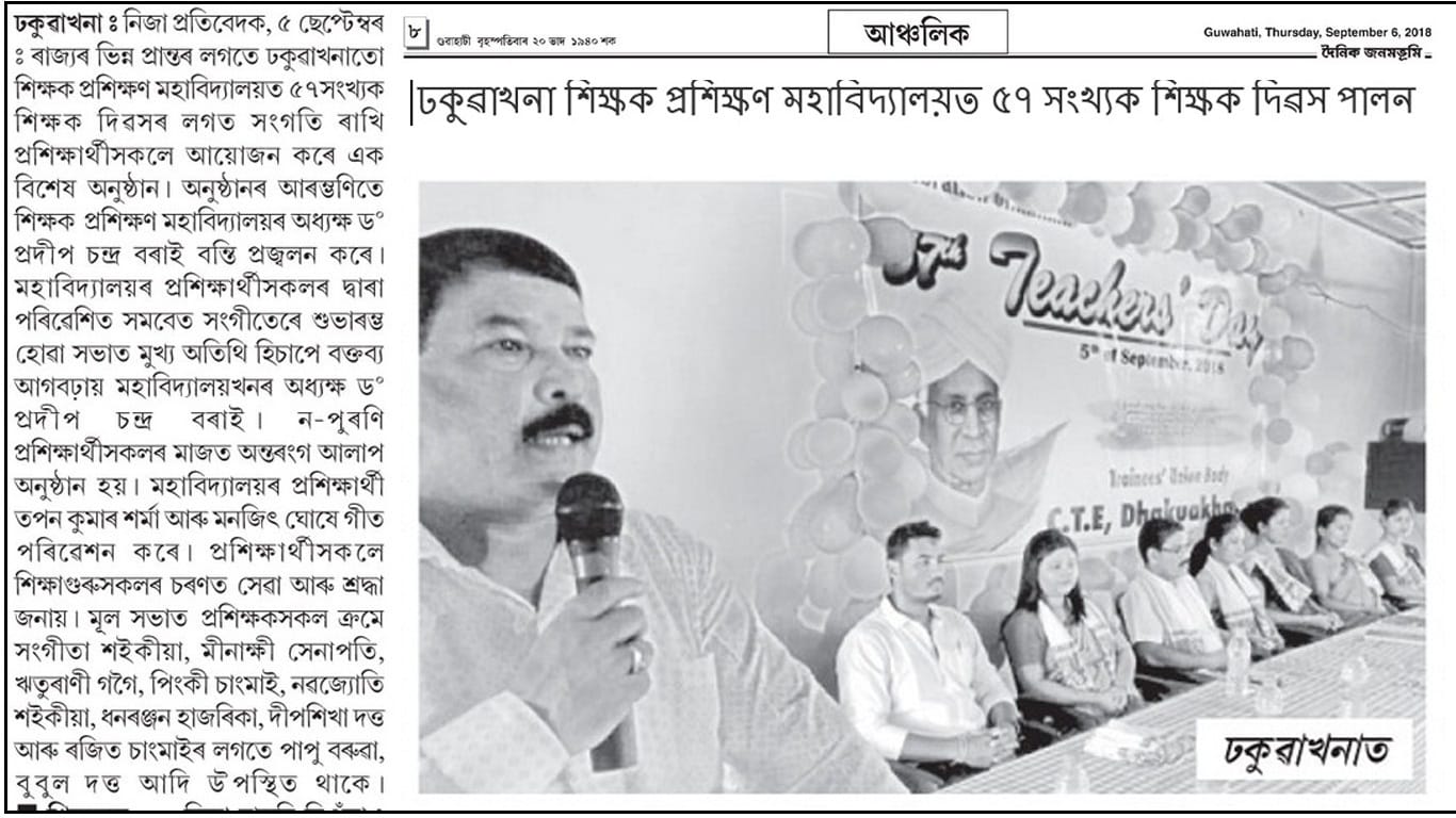 Thank you for showing your interest to College of Teacher Education, Dhakuakhana. College of Teacher Education, Dhakuakhana is one of the rapidly growing institutions in the field of Education in general and Teacher Education in particular. CTE, Dhakuakhana whole – heartedly believes that education is the potent force of growth and development of any country.