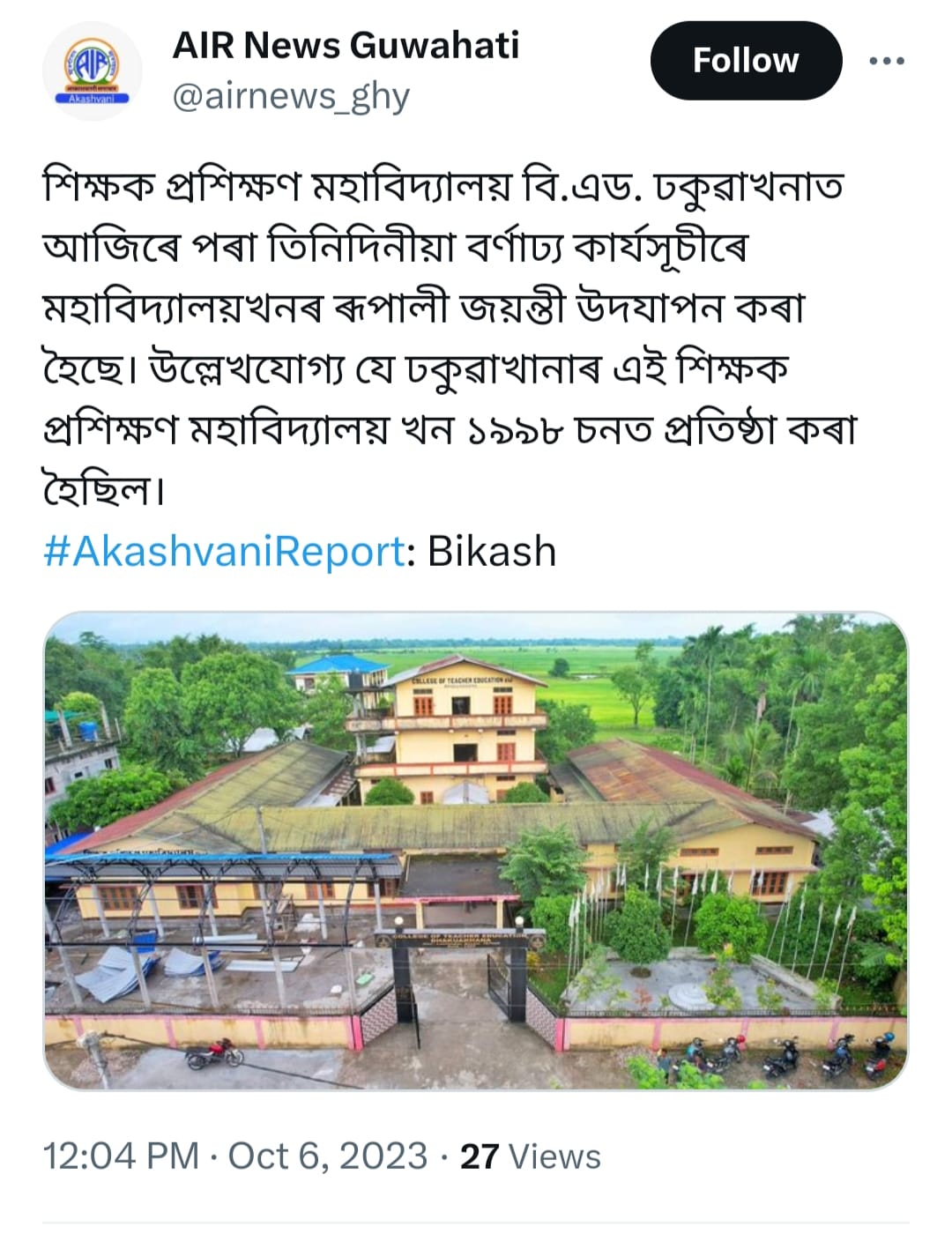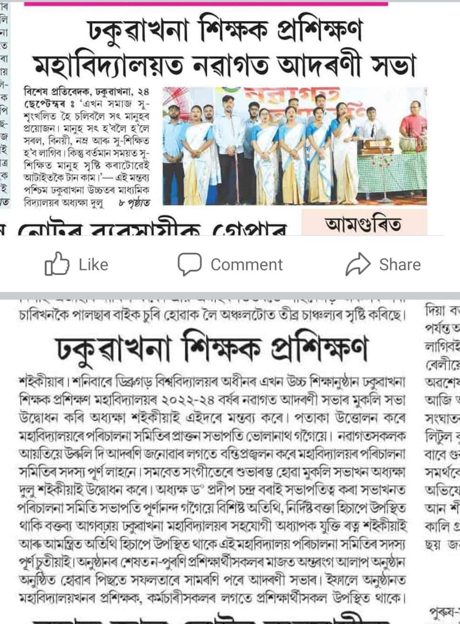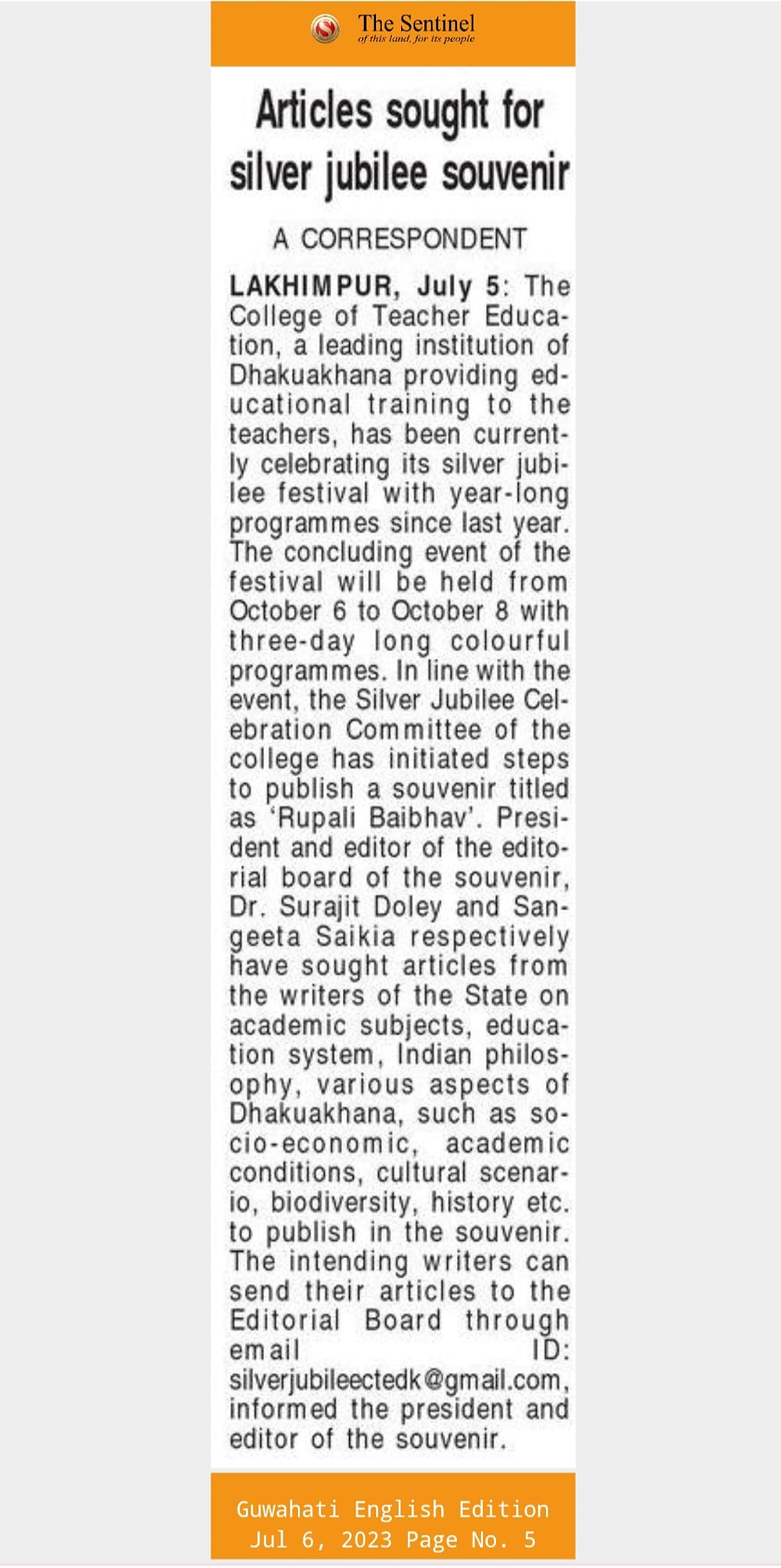 Thank you for showing your interest to College of Teacher Education, Dhakuakhana. College of Teacher Education, Dhakuakhana is one of the rapidly growing institutions in the field of Education in general and Teacher Education in particular. CTE, Dhakuakhana whole – heartedly believes that education is the potent force of growth and development of any country.