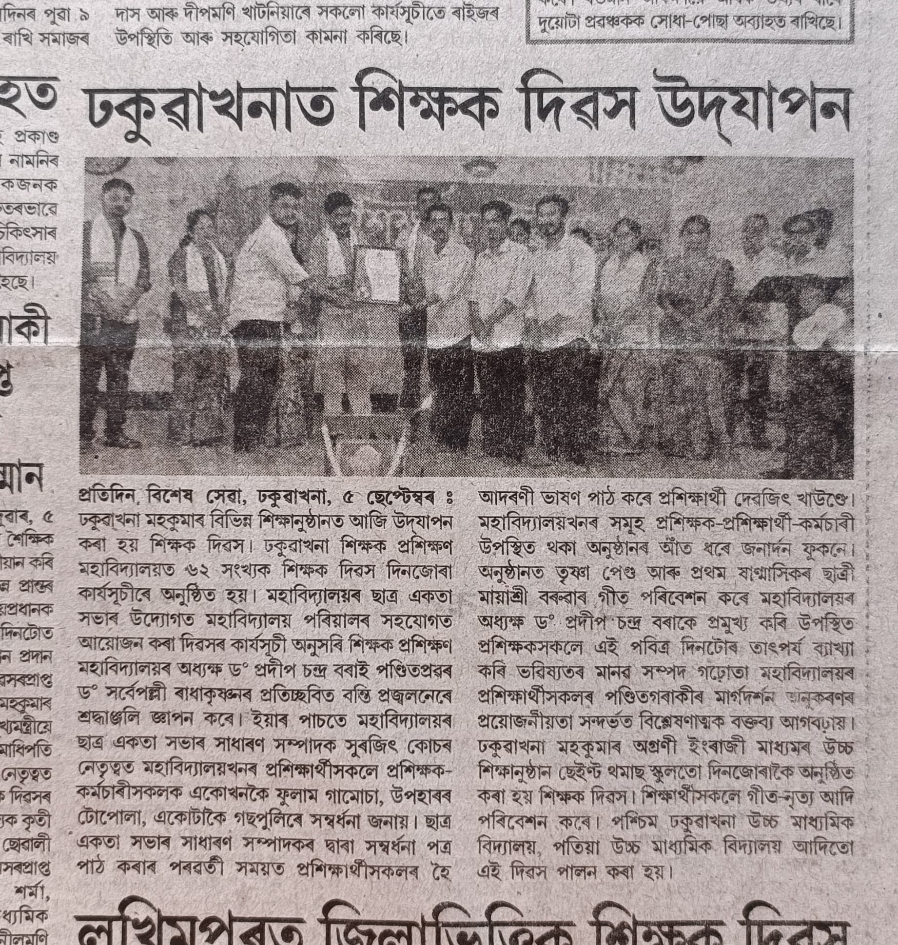 The College of Teachers’ Education (B.Ed.) Dhakuakhana was established in the year 1998 with the support and contribution of the people residing in the flood affected region of Dhakuakhana Sub-Division. The initiatives of the academicians, educationists, and dedicated social workers of this backward region and with the active financial and moral support of the neighbouring population the dream of establishment of the sole B.Ed. College in this area came into being. The College is located in a picturesque environment near Dhakuakhana town surrounded by various educational institutions.